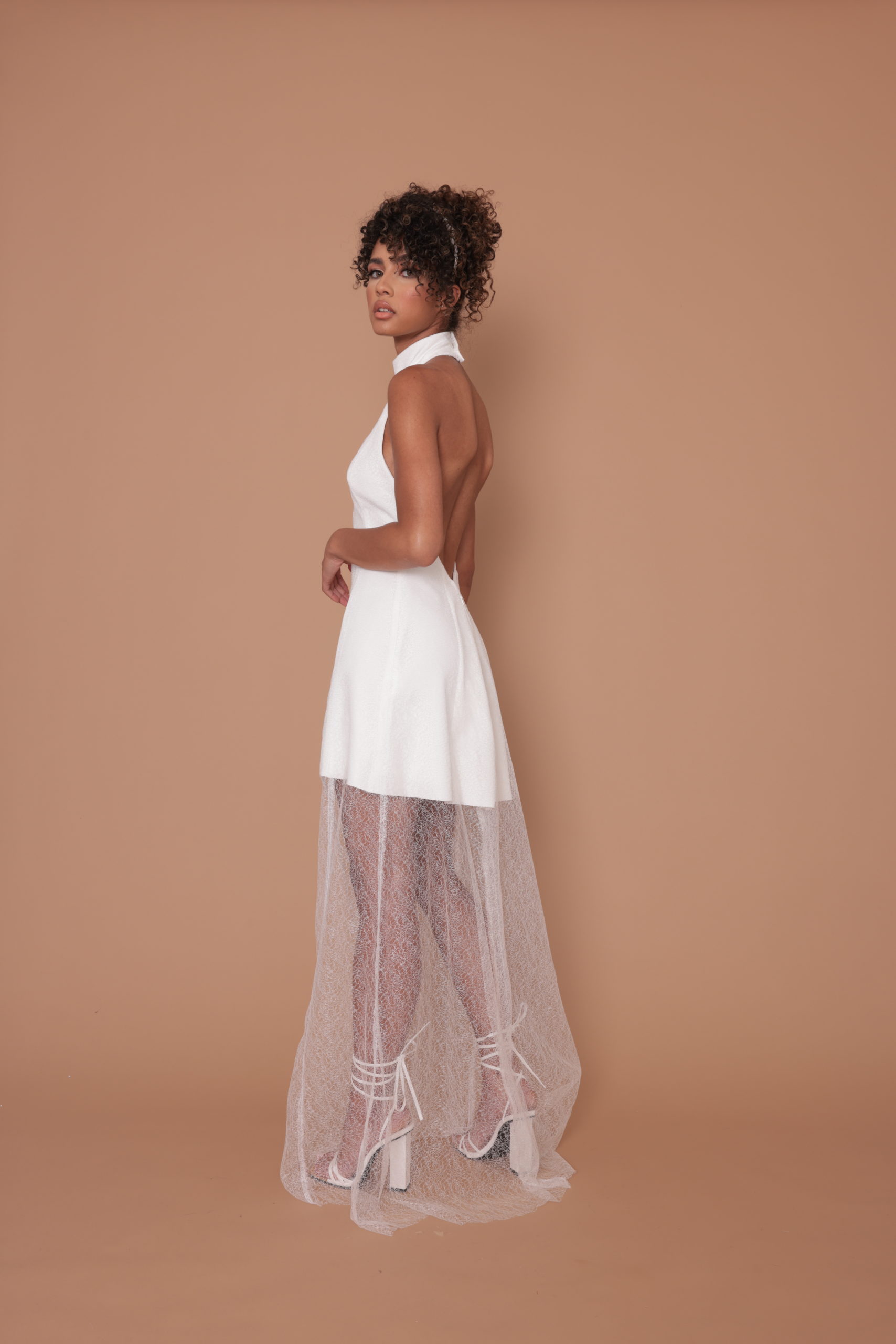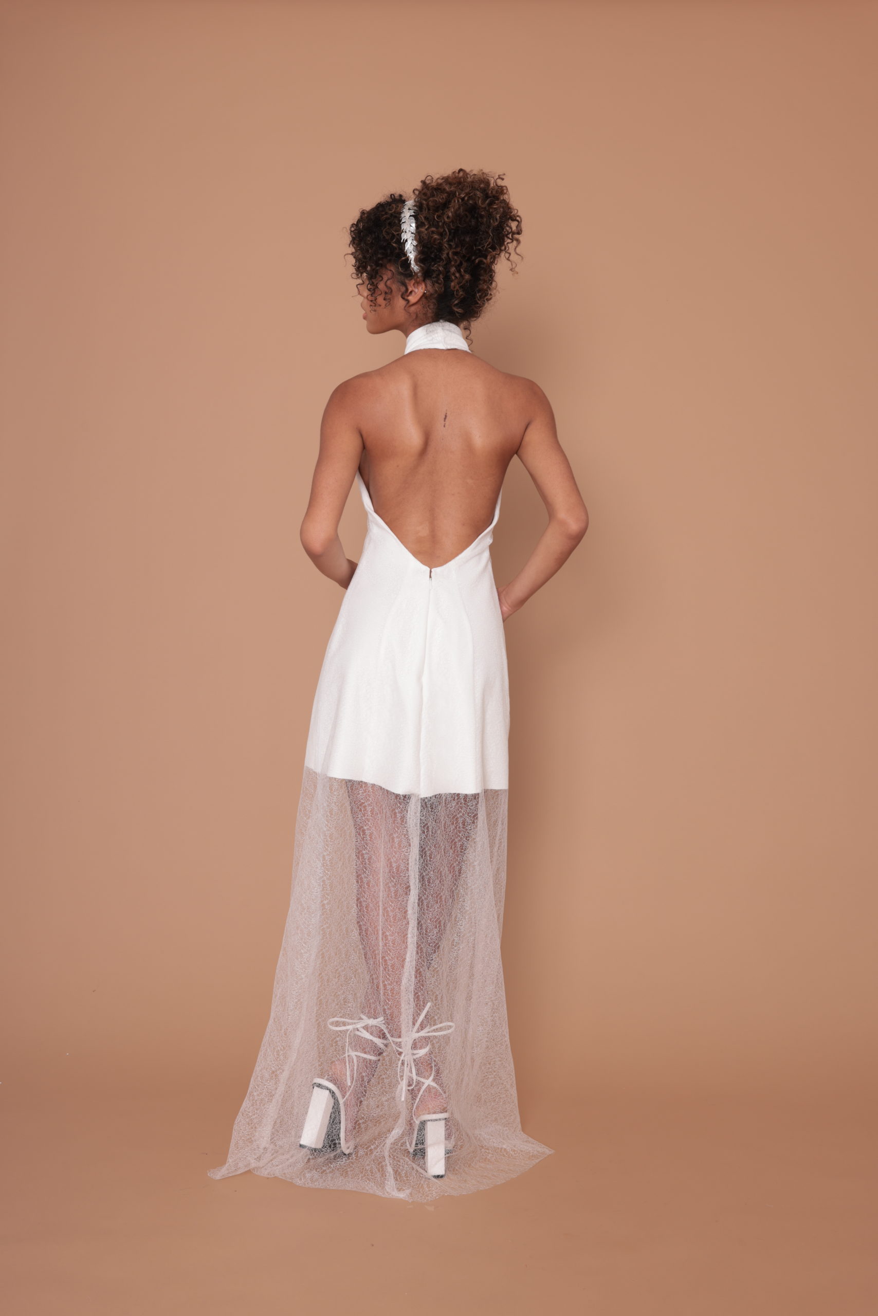 La superposition de tissus avec son tulle délicatement brodé rajoute à ce col montant un look différent.