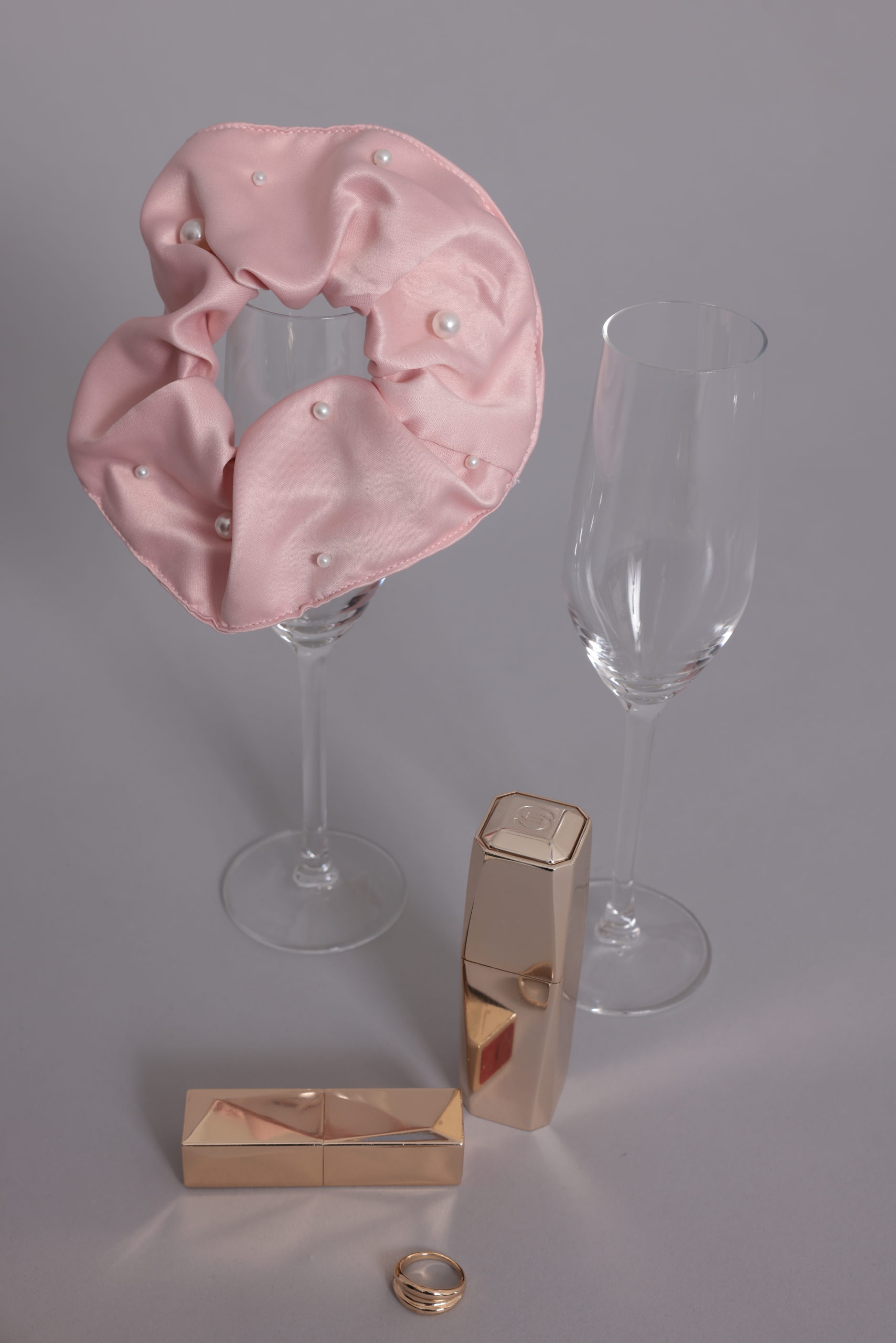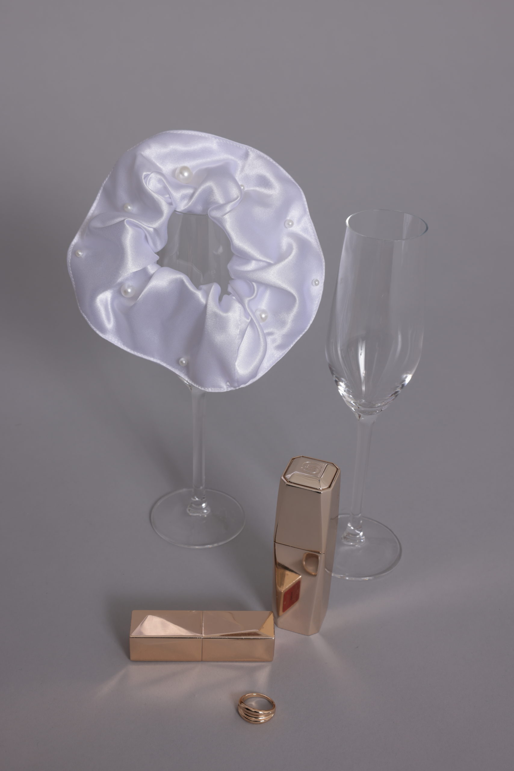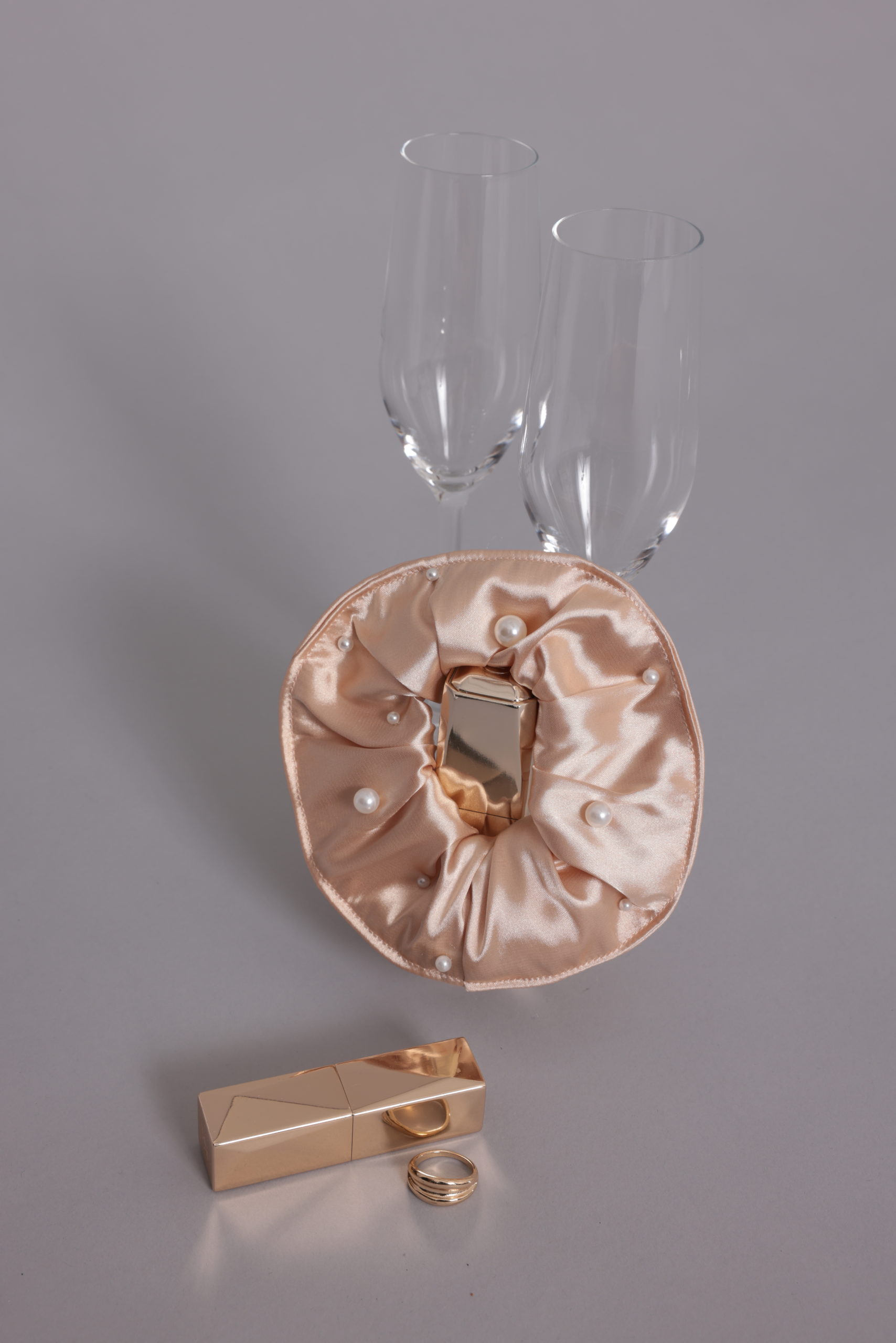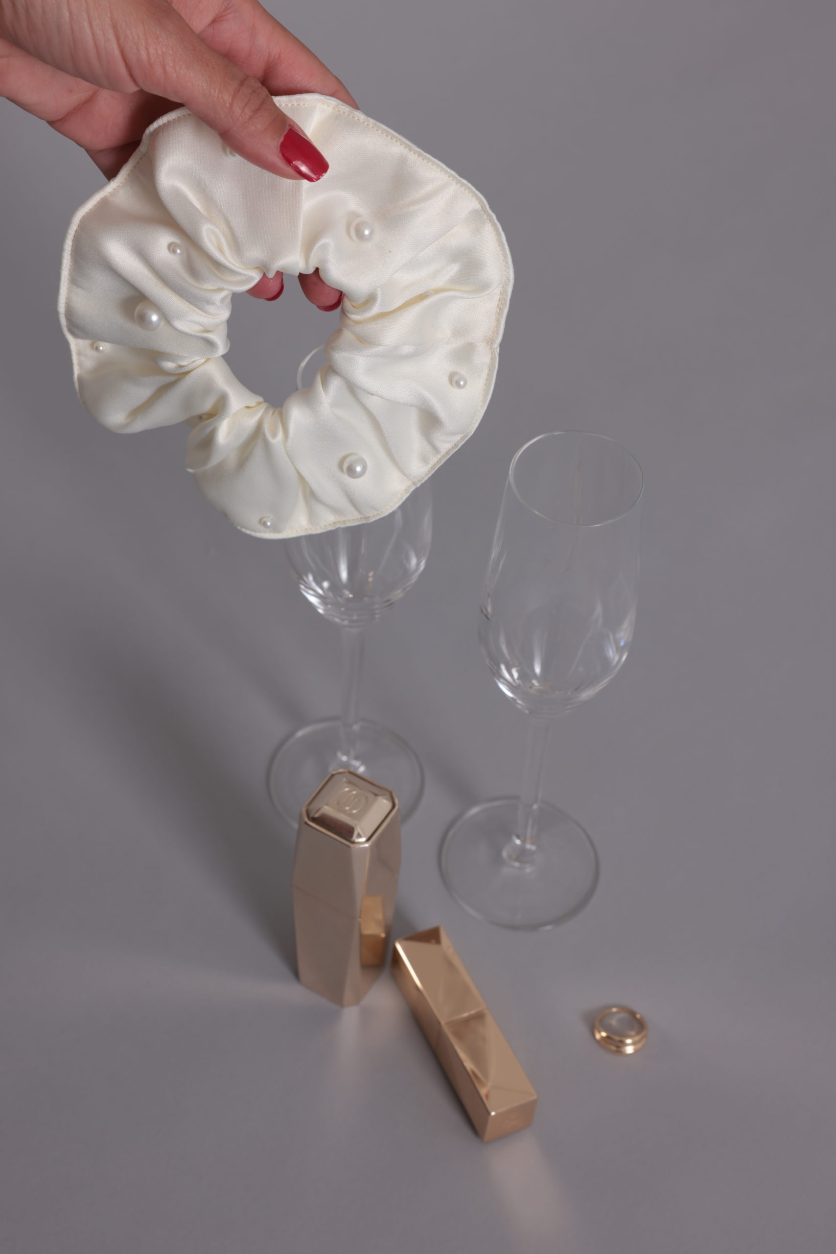 Chouchou Bagel Pearl en satin ivoire habillé de perle décorative. accessoire de tête pour marié ou demoiselles d’honneur.